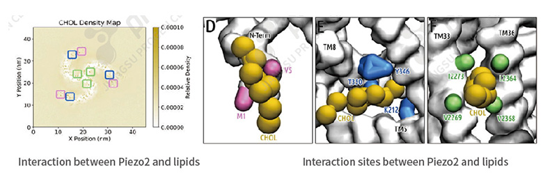 Lipids interact with Piezo2 through lipid-protein interactions.