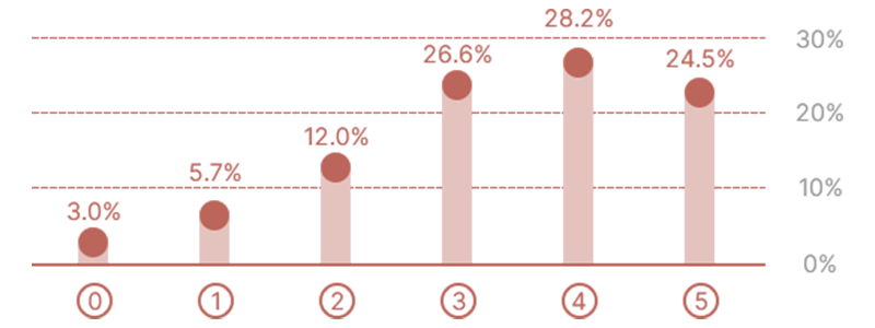 The 2014 Blue Book of Sexual Happiness showed that only 37%of the surveyed men felt that their current sex life was verysatisfying, Data from the Global Sexual Happiness Index Surveyindicated that 70% of the respondents were not satisfied withtheir sex lives. The 2020 data presented in the 2020 YoungPeople's Sex and Love Survey Report, which was based on theanalysis of 3l,186 valid questionnaires with a balancedmale-to-female ratio, revealed that 79.4% of respondentsbelieved their ability to satisfy their partner's sexual needs wasabove a score of 3 (on a scale of l to 5), but only 67.5% felt thattheir own sexual needs were being met.