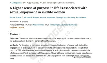 A study by the College of Social Sciences at the University of Paisleyfound that when having sex, people are less likely to have elevatedblood pressure when experiencing stress, and that sexual behaviorhelps to suppress anxiety, soothe emotions, and calm tensions.University of Pittsburgh School of Medicine (University of PittsburghSchool of Medicine) psychology researcher Beth A. Prairie and othersin 2011 study found that: higher sexual satisfaction of middle-agedand elderly women, the sense of purpose in life is higher. ProfessorPrairie pointed out that a sense of purpose in life is of great signifi-cance to the physical and mental health of middle-aged and elderlywomen.A highersense of purpose also means better health.