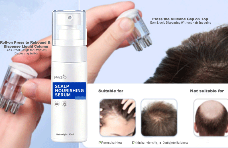 If the serum flows out slowly, press the silicone soft cap to apply pressure for better dispensing. Massage the scalp with the roller ball to enhance absorption. This method is suitable for detailed care of long hair.