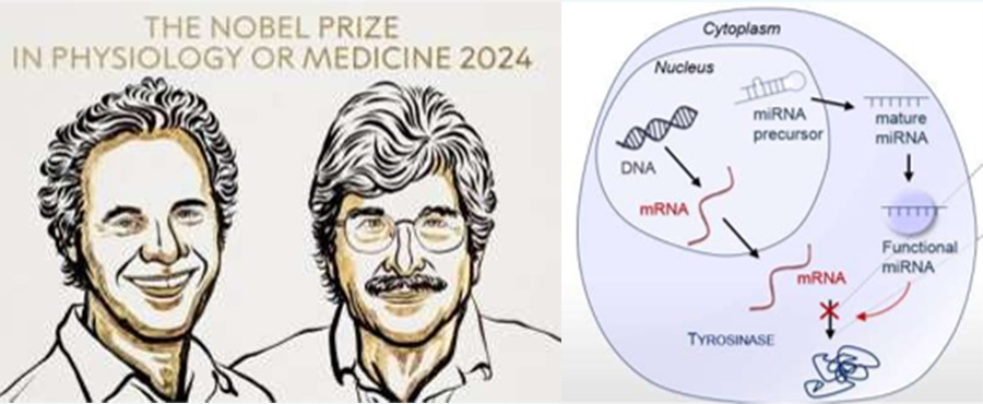 The 2024 Nobel Prize in Physiology or Medicine was awarded to Victor Ambros and Gary Ruvkun in recognition of their contributions to the discovery of miRNAs (microRNAs) and the exploration of their role in post-transcriptional gene regulation.